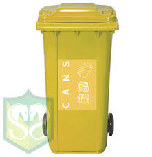 这是黄色垃圾桶是用来回收铝罐的。