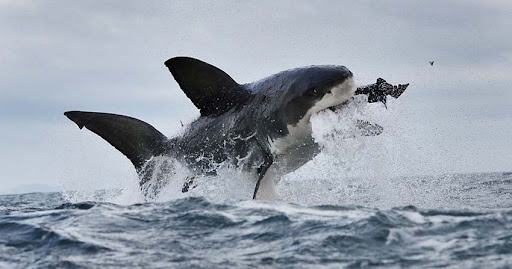大白鲨以突袭和快速攻击著称,最快可达每小时40公里以上,它们的身体结构和尾鳍设计,使得它们既强壮又灵活。常从水下猛冲上来,一口咬住猎物后迅速脱离战场。它们的攻击方式非常高效,有时会"试咬"猎物,确认食物后再发起真正的攻击。