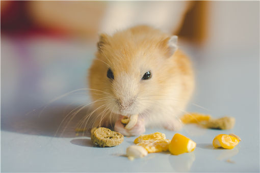 水果干、适量的蔬菜。喂养时一般喂食金丝熊专用的鼠粮,在以鼠粮为主的时候,也要注意喂一些面包虫和小鱼干。