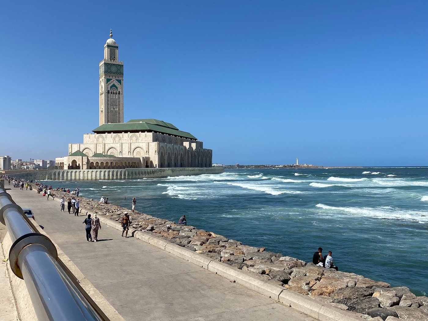 门票价格(摩洛哥迪拉姆 MAD): 外国成人:130 MAD 摩洛哥居民及外国学生:70 MAD 6 岁以上儿童和摩洛哥学生:30 MAD 6 岁以下儿童(需由家长陪同):免费 着装与行为规范 衣着需遮盖肩膀、胸部和膝盖。禁止穿着短裤和无袖衣物。 进入清真寺前需脱鞋,入口处提供鞋袋。 禁止在清真寺内吸烟、饮食和拍摄视频。 参观时请保持安静,尊重宗教场所的神圣氛围。 交通与周边设施 清真寺位于卡萨布兰卡的滨海大道(La Corniche)东端,靠近大西洋海岸。 可乘坐出租车、私人车辆或步行前往。 附近设有大型地下停车场,停车费约为每 2 小时 5 MAD。 参观后,可在滨海长廊散步,欣赏海景。