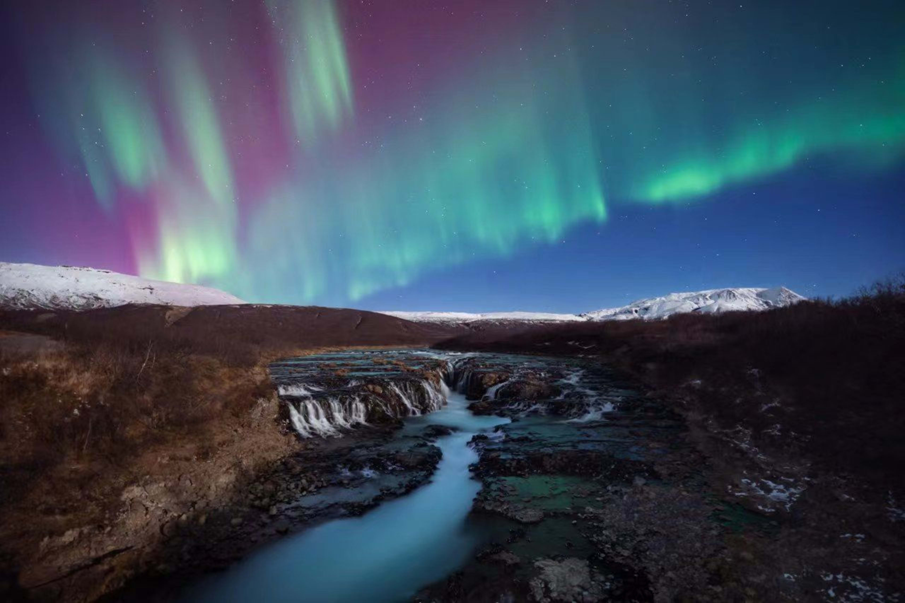 冰岛:独特的地热景观与极光相映成趣。