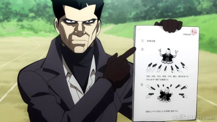 防卫省官员,乌间老师在军队里的同僚,非常嫉妒乌间的表现。他被安排到E班担任新的体育教师,教学理念为“糖和鞭子”。与学生们以家人相称,却以父亲自居而肆意精神和肉体上虐待学生。