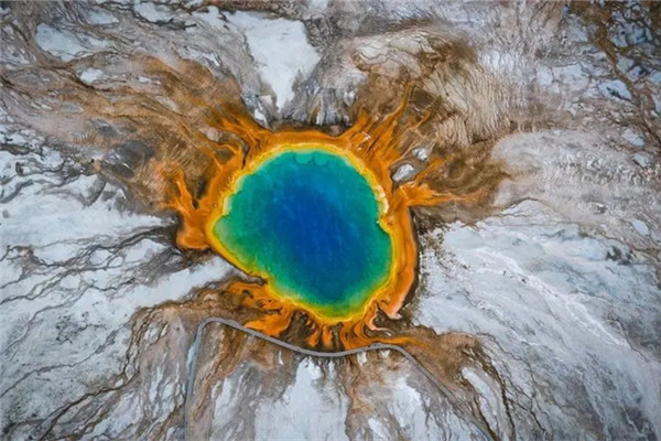 | 大棱镜温泉-美国 大棱镜温泉(The Grand Prismatic Spring),又称大虹彩温泉,位于美国黄石国家公园经纬坐标44.524569, -110.837975处,直径约100米,是美国最大,世界第三大的温泉。它宽约75至91米,49米深,水温高达85℃,每分钟约会涌出2000升泉水。最早于1839年为探险家所发现。 大棱镜温泉也是黄石公园里最有名的温泉之一。大棱镜温泉的美在于湖面的颜色随季节而改变,春季,湖面从绿色变为灿烂的橙红色,这是由于富含矿物质的水体中生活着的藻类和含色素的细菌等微生物,它们体内的叶绿素和类胡萝卜素的比例会随季节变换而改变,于是水体也就呈现出不同的色彩。在夏季,叶绿素含量相对较低,显现橙色、红色,或黄色。但到了冬季,由于缺乏光照,这些微生物就会产生更多的叶绿素来抑制类胡萝卜素的颜色,于是就看到水体呈现深绿色。 | ![]() |