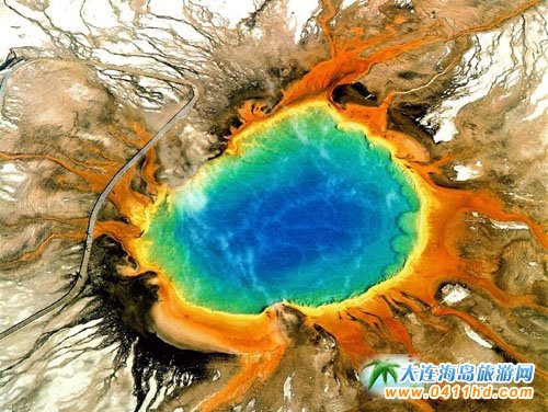 大棱镜温泉-美国 大棱镜温泉(The Grand Prismatic Spring),又称大虹彩温泉,位于美国黄石国家公园经纬坐标44.524569, -110.837975处,直径约100米,是美国最大,世界第三大的温泉。它宽约75至91米,49米深,水温高达85℃,每分钟约会涌出2000升泉水。最早于1839年为探险家所发现。 大棱镜温泉也是黄石公园里最有名的温泉之一。大棱镜温泉的美在于湖面的颜色随季节而改变,春季,湖面从绿色变为灿烂的橙红色,这是由于富含矿物质的水体中生活着的藻类和含色素的细菌等微生物,它们体内的叶绿素和类胡萝卜素的比例会随季节变换而改变,于是水体也就呈现出不同的色彩。在夏季,叶绿素含量相对较低,显现橙色、红色,或黄色。但到了冬季,由于缺乏光照,这些微生物就会产生更多的叶绿素来抑制类胡萝卜素的颜色,于是就看到水体呈现深绿色。 |