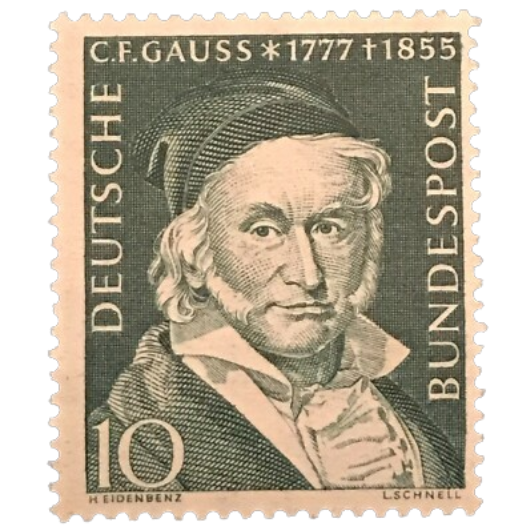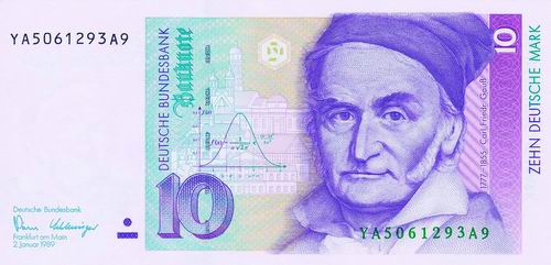 高斯的肖像和他所发现的常态分布曲线与哥廷根地标性建筑一起印在德国10马克的钞票中。