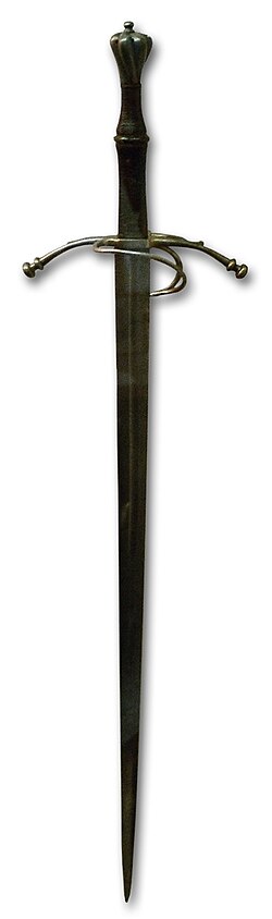 德式斗剑: 盛行於15世紀至17世紀之武器, 造型單純的劍柄與呈S形的護手為其特徵