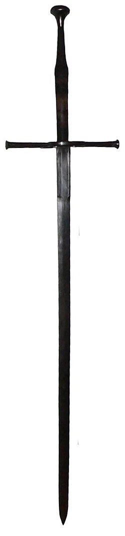 苏格兰阔刃大剑: 为中世纪至近代期间,苏格兰军队用的一种大剑。是雙手劍之一種, 造型單純,劍柄呈十字形。護手朝鋒部傾斜,頂端則以四枚金屬圓形排列的塞爾特式圖騰裝飾,作為其特色