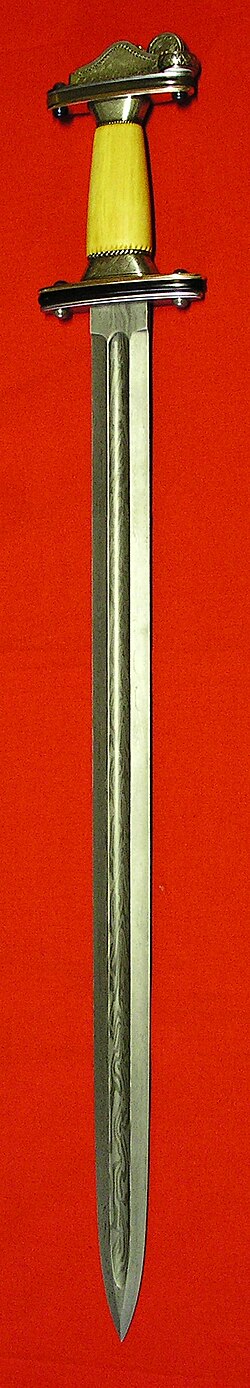 大迁徙时代剑: 一种在欧洲历史上的民族大迁徙时期和墨洛温王朝时期(约公元 4 至 7 世纪)流行的剑,尤其是在日耳曼民族中, 通常是光滑的或显示出非常浅的血槽,并且通常在中心部分有多条图案焊接带