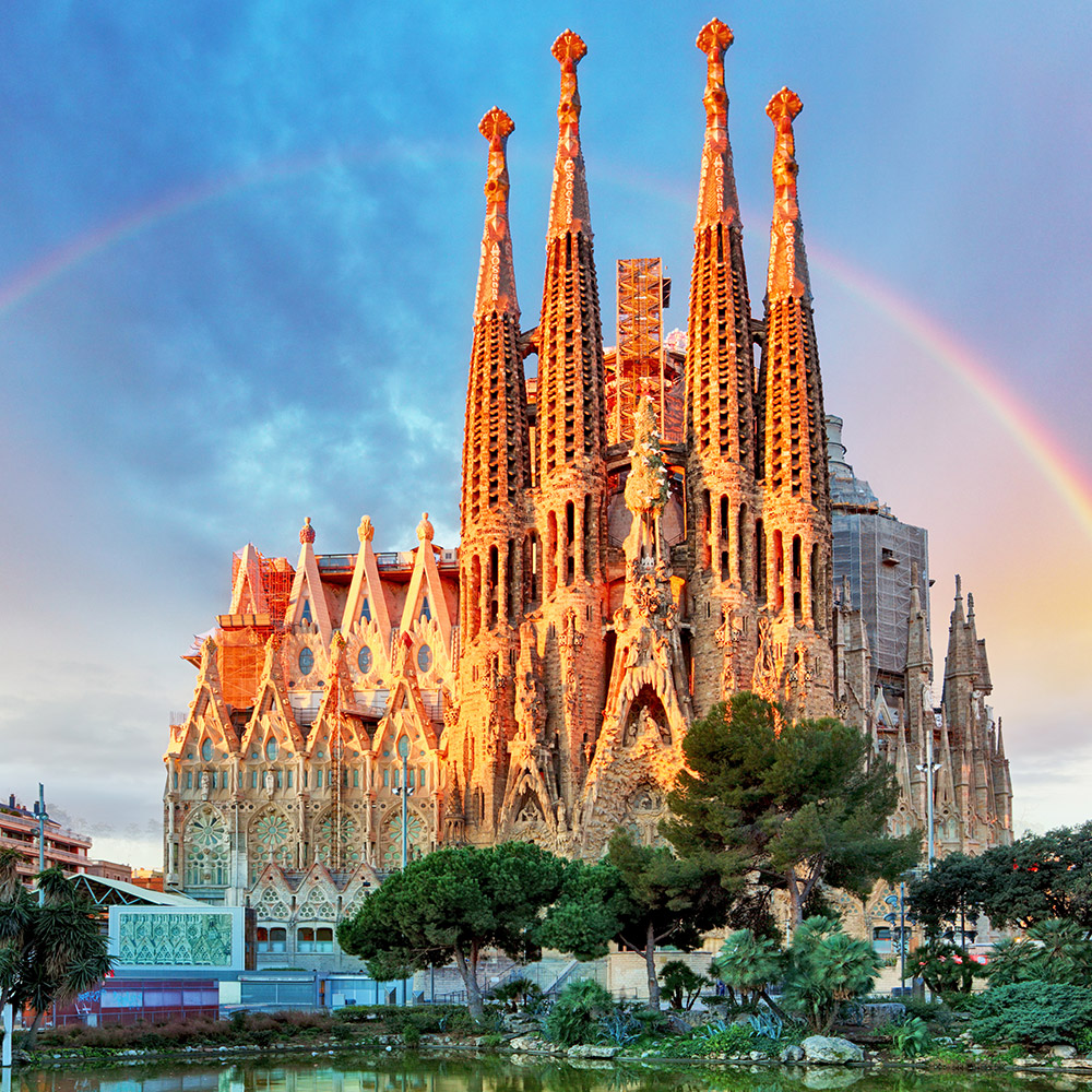 圣家堂-西班牙 圣家宗座圣殿暨赎罪殿(加泰罗尼亚语:Basílica i Temple Expiatori de la Sagrada Família),一般简称为圣家堂(Sagrada Família),是位于西班牙加泰罗尼亚首府巴塞罗那扩展区的一座未完工的天主教教堂,是世界上最大的未完工的天主教堂,由加泰罗尼亚建筑师安东尼·高迪设计。其高耸与独特的建筑设计,使得该教堂成为巴塞罗那最为人所知的观光景点,同时也是联合国教科文组织世界遗产的一部分. 1882年3月19日,圣家堂在建筑师法兰西斯柯·德·保拉·德尔·维拉-洛萨诺的领导下开始建造,当维拉尔于1883年辞职后,高迪接任总建筑师,以他的建筑和工程风格改造项目,其中,他则将哥德式和曲线新艺术风格相结合。并将他的余生都献给了这个项目,他被安葬在教堂的地下室。然而由于教堂资金的来源主要靠个人捐款捐助,捐款的缺少使得工程进展缓慢。到高迪1926年去世时,工程还不到完成的四分之一。 |