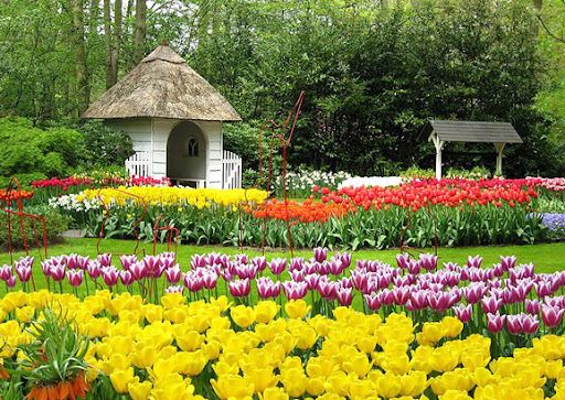 库肯霍夫公园-荷兰 库肯霍夫(Keukenhof,发音为/ˈkøːkənˌhɔf/,在荷兰文中意为Kitchen garden,厨房花园,因15世纪时园内主要种植贵族厨房所需的草药和蔬菜而得名),又称欧洲花园(Garden of Europe),位于阿姆斯特丹近郊盛产球根花田的小镇利瑟(Liess),是每年花卉游行的必经之路,占地33公顷,是世界上最大的花园。根据库肯霍夫公园的官方网站,大约7,000,000株花球茎被种植于该公园内。该公园对面就是库肯霍夫城堡。 库肯霍夫公园每年3月下旬至5月上旬对外开放。 |