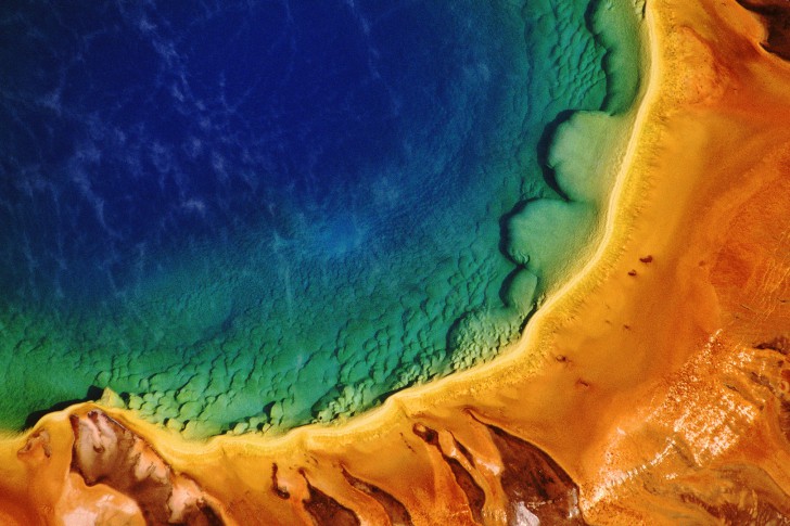 大棱镜温泉(The Grand Prismatic Spring),又称大虹彩温泉,位于美国黄石国家公园经纬坐标44.524569, -110.837975处,直径约100米,是美国最大,世界第三大的温泉。它宽约75至91米,49米深,水温高达85℃,每分钟约会涌出2000升泉水。最早于1839年为探险家所发现。 大棱镜温泉也是黄石公园里最有名的温泉之一。大棱镜温泉的美在于湖面的颜色随季节而改变,春季,湖面从绿色变为灿烂的橙红色,这是由于富含矿物质的水体中生活着的藻类和含色素的细菌等微生物,它们体内的叶绿素和类胡萝卜素的比例会随季节变换而改变,于是水体也就呈现出不同的色彩。在夏季,叶绿素含量相对较低,显现橙色、红色,或黄色。但到了冬季,由于缺乏光照,这些微生物就会产生更多的叶绿素来抑制类胡萝卜素的颜色,于是就看到水体呈现深绿色。 |