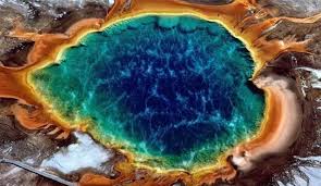 大棱镜温泉-美国 大棱镜温泉(The Grand Prismatic Spring),又称大虹彩温泉,位于美国黄石国家公园经纬坐标44.524569, -110.837975处,直径约100米,是美国最大,世界第三大的温泉。它宽约75至91米,49米深,水温高达85℃,每分钟约会涌出2000升泉水。最早于1839年为探险家所发现。 大棱镜温泉也是黄石公园里最有名的温泉之一。大棱镜温泉的美在于湖面的颜色随季节而改变,春季,湖面从绿色变为灿烂的橙红色,这是由于富含矿物质的水体中生活着的藻类和含色素的细菌等微生物,它们体内的叶绿素和类胡萝卜素的比例会随季节变换而改变,于是水体也就呈现出不同的色彩。在夏季,叶绿素含量相对较低,显现橙色、红色,或黄色。但到了冬季,由于缺乏光照,这些微生物就会产生更多的叶绿素来抑制类胡萝卜素的颜色,于是就看到水体呈现深绿色。 |