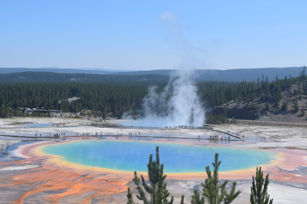 大棱镜温泉-美国 大棱镜温泉(The Grand Prismatic Spring),又称大虹彩温泉,位于美国黄石国家公园经纬坐标44.524569, -110.837975处,直径约100米,是美国最大,世界第三大的温泉。它宽约75至91米,49米深,水温高达85℃,每分钟约会涌出2000升泉水。最早于1839年为探险家所发现。 大棱镜温泉也是黄石公园里最有名的温泉之一。大棱镜温泉的美在于湖面的颜色随季节而改变,春季,湖面从绿色变为灿烂的橙红色,这是由于富含矿物质的水体中生活着的藻类和含色素的细菌等微生物,它们体内的叶绿素和类胡萝卜素的比例会随季节变换而改变,于是水体也就呈现出不同的色彩。在夏季,叶绿素含量相对较低,显现橙色、红色,或黄色。但到了冬季,由于缺乏光照,这些微生物就会产生更多的叶绿素来抑制类胡萝卜素的颜色,于是就看到水体呈现深绿色。 |