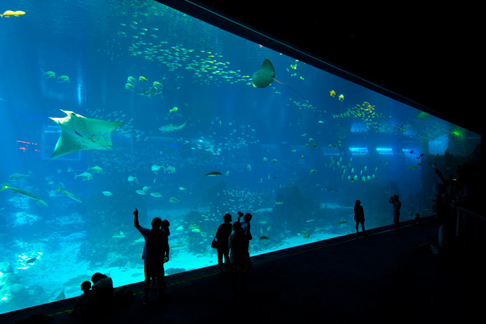 新加坡水族馆建筑设计充分体现现代美学与生态理念的结合。展馆采用多层次结构,分为多个主题区域,如南中国海展区、印度洋展区和太平洋展区,模拟真实海洋环境。最令人称道的是长达36米的“海底隧道”,游客可以在其中360度环绕观赏鲸鲨、蝠鲼及成千上万的热带鱼群,仿佛穿越真正的海底世界。展馆内部光线设计巧妙,利用蓝绿色灯光营造宁静深邃的海洋氛围。除了大型水族箱,馆内还设置了触摸池、互动屏幕和虚拟现实体验区,结合高科技手段提升游客的参与感与学习兴趣。建筑材料和维护系统均注重环保和节能,支持水族馆的可持续发展目标。