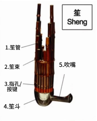 笙是中国的一种自由簧管乐器,属于八音中的“匏”类,以簧、管共振发声,为中国吹管乐器里面,唯一吹、吸皆可发声的乐器,也是唯一可以吹奏和声的乐器。