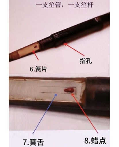 笙斗用葫芦制作,吹嘴由木头制成,十几根长短不等的竹管呈马蹄形状,排列在笙斗上面。唐代以后,演奏家们把笙斗改为木制,后来经过流传,又用铜斗取代了木斗,同时簧片也从竹制改为铜制。