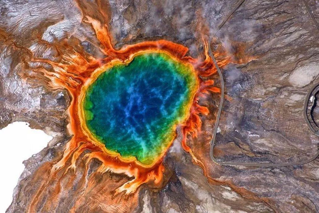 大棱镜温泉-美国 大棱镜温泉(The Grand Prismatic Spring),又称大虹彩温泉,位于美国黄石国家公园经纬坐标44.524569, -110.837975处,直径约100米,是美国最大,世界第三大的温泉。它宽约75至91米,49米深,水温高达85℃,每分钟约会涌出2000升泉水。最早于1839年为探险家所发现。 大棱镜温泉也是黄石公园里最有名的温泉之一。大棱镜温泉的美在于湖面的颜色随季节而改变,春季,湖面从绿色变为灿烂的橙红色,这是由于富含矿物质的水体中生活着的藻类和含色素的细菌等微生物,它们体内的叶绿素和类胡萝卜素的比例会随季节变换而改变,于是水体也就呈现出不同的色彩。在夏季,叶绿素含量相对较低,显现橙色、红色,或黄色。但到了冬季,由于缺乏光照,这些微生物就会产生更多的叶绿素来抑制类胡萝卜素的颜色,于是就看到水体呈现深绿色。 |