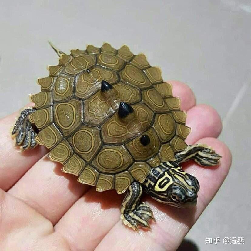 特点 雄性甲壳长度达到16厘米,雌性27厘米。 地图龟背甲棕色,每块盾片中央具有暗红色环形条纹;中央第三至第四枚嵴棱突起,形成棘状;腹甲淡黄色,具黑色花纹,似地图状;头顶部具1对黄色斑点。 |