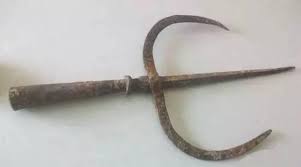 ·二股叉铁制,长杆,杆头有二股平行的锥叉,故名。少林独股叉,全长八尺,用于防身习武守院。